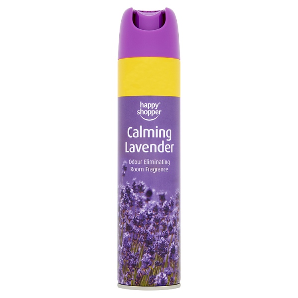 Safety Information: Happy Shopper Calming Lavender Room Fragrance WARNING: USE ONLY AS DIRECTED Pressurised container. May burst if heated. Protect from sunlight. Do not expose to temperatures exceeding 50°C. Keep away from heat, hot surfaces, sparks, open flames and other ignition sources. No smoking. Do not pierce or burn even after use. Keep out of reach of children. 5% by mass of the contents are flammable. Intentional misuse by deliberately concentrating and inhaling contents can be harmful or fatal. Avoid contact with eyes. CAUTION: Rinse and dry hands after use. Do not spray near eyes or face. If product gets into eyes rinse thoroughly with water. People with sensitive or damaged skin should avoid prolonged contact with the product. Do not spray directly onto furniture or fabrics. Do not spray near or place can on painted or polished surfaces. People suffering from perfume sensitivity should be cautious when using this product. Air fresheners do not replace good hygiene practices. SOLVENT ABUSE CAN KILL INSTANTLY